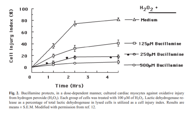 환원된 글루타치온(GSH)는 퍼옥사이드가 세포내로 들어오게 되면, 이를 GSSG가 되면서 본인은 산화되고 남을 환원시켜, 퍼옥사이드가 체내 단백질과 DNA를 공격하는 것을 막습니다. 이때 부시라민의 thiol (-SH)기는 세포내 GSSG를 GSH로 바꾸어주고 세포 내에서 퍼옥사이드를 과산화수소로 바꾸어 주면서 퍼옥사이드의 유해작용을 막을 수 있게 됩니다.