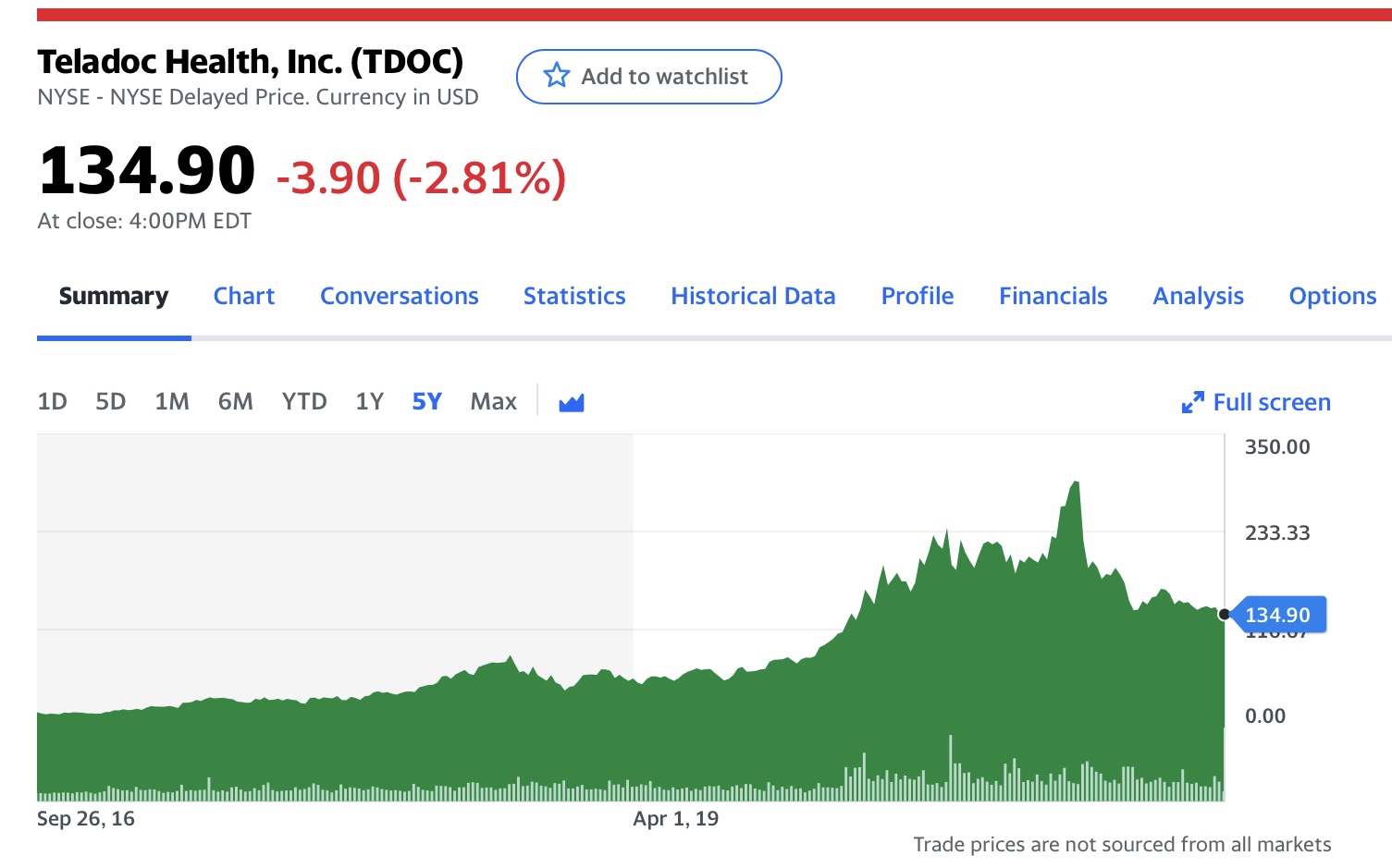 원격의료와 관련된 대표 해외 주식은 Teledoc입니다.