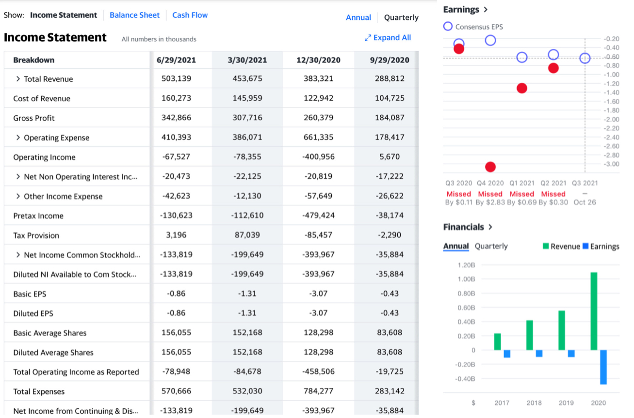 텔렉닥은 20년 2월 코로나 사태 이후 주가가 급속도로 올라갔다가 최근 주가가 빠지고 있는 모습을 보이고 있습니다. (해당 사진 주가는 21년 9월 24일 기준입니다. 출처: yahoo finance) 매출은 그동안 지속적으로 상승하고 있으나, EPS가 컨센서스에 못미치며 주가가 지속적으로 하락하는 것을 확인할 수 있습니다. 미국 고용주들은 직원들의 의료비 절감을 위해 노력하고 있기 때문에 앞으로도 지속적으로 텔레닥 구독을 할 것으로 보이며, 이에 따라 매출 역시 지속적으로 상승할 것으로 보입니다.