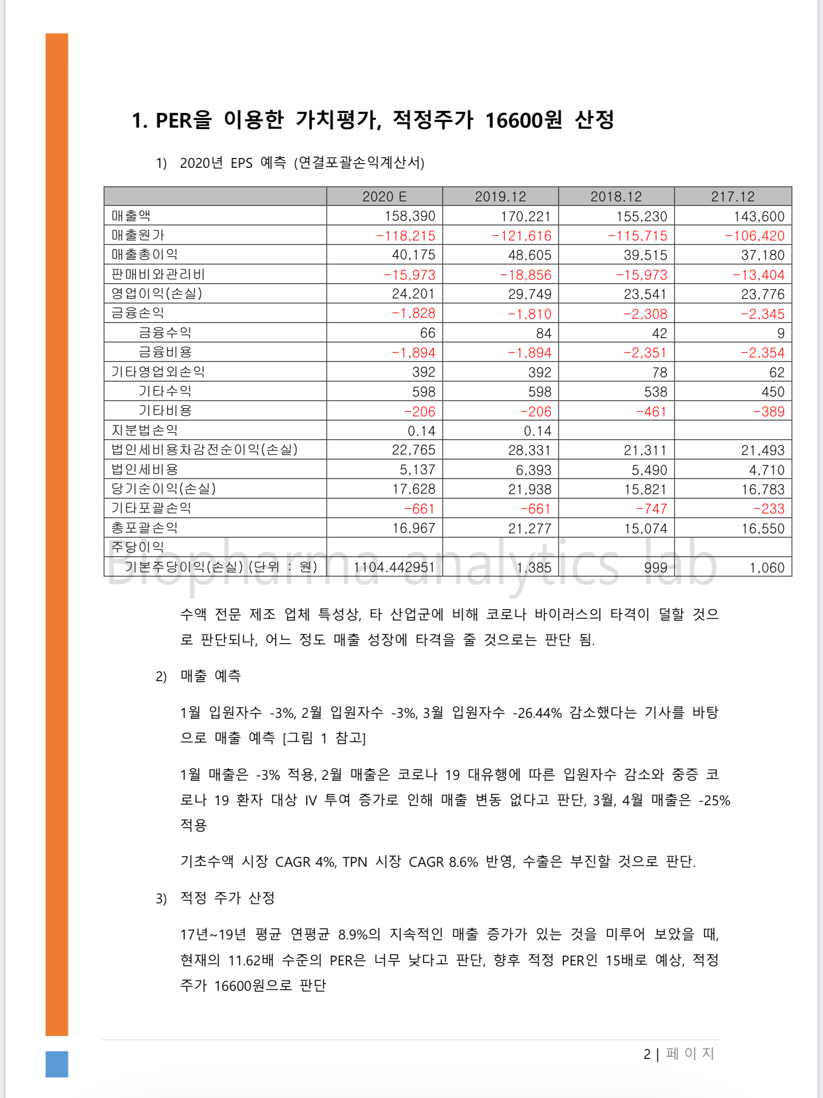 1. PER을 이용한 가치평가, 적정주가 16600원 산정, 올해보다 내년을 보자!