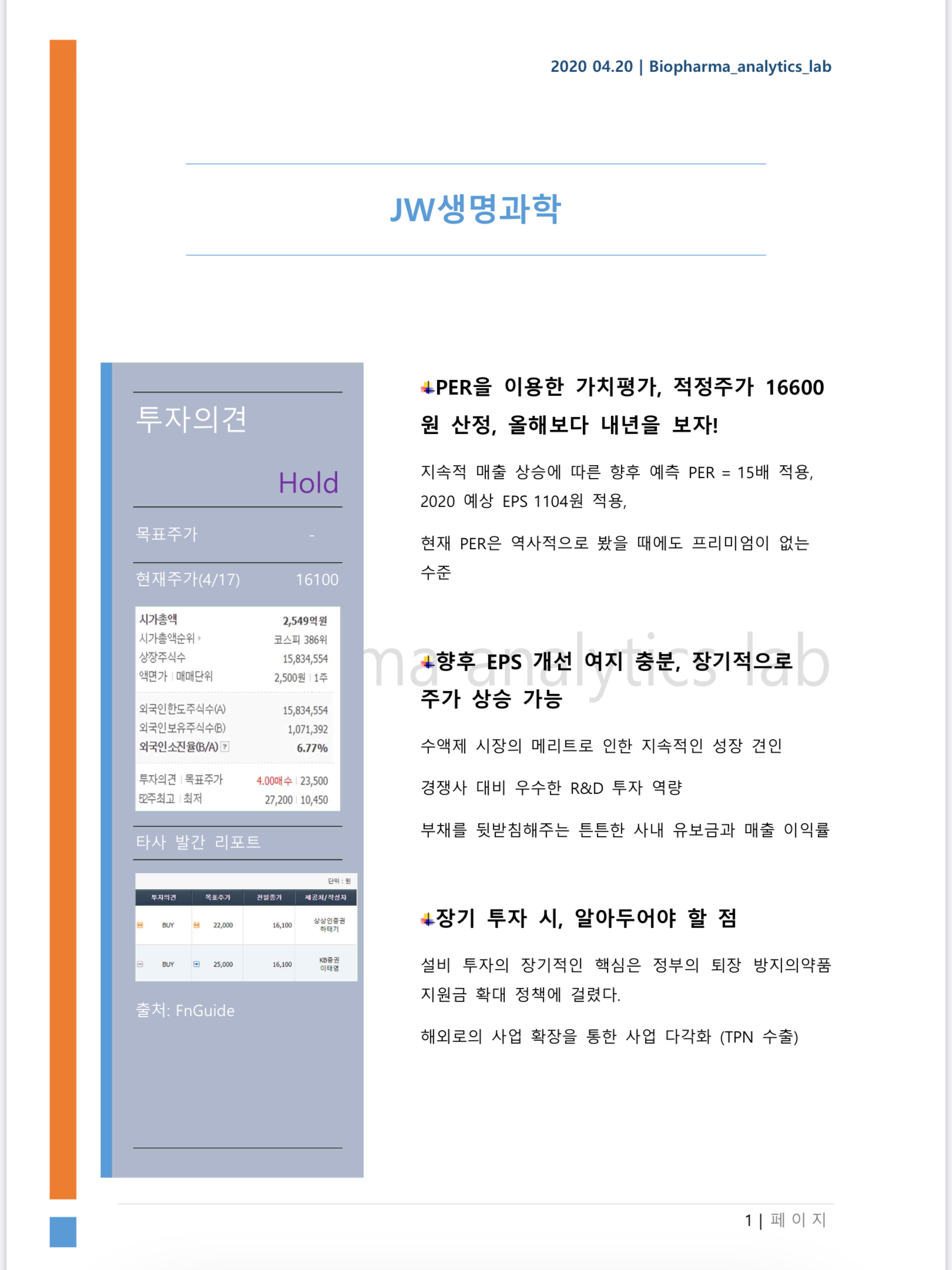 JW생명과학 주식 투자 정보 이거 하나로 끝내자!/ 기업분석 _2020.04.20바이오 제약주 기업분석(KOR)/중견기업 2020. 4. 20. 14:11