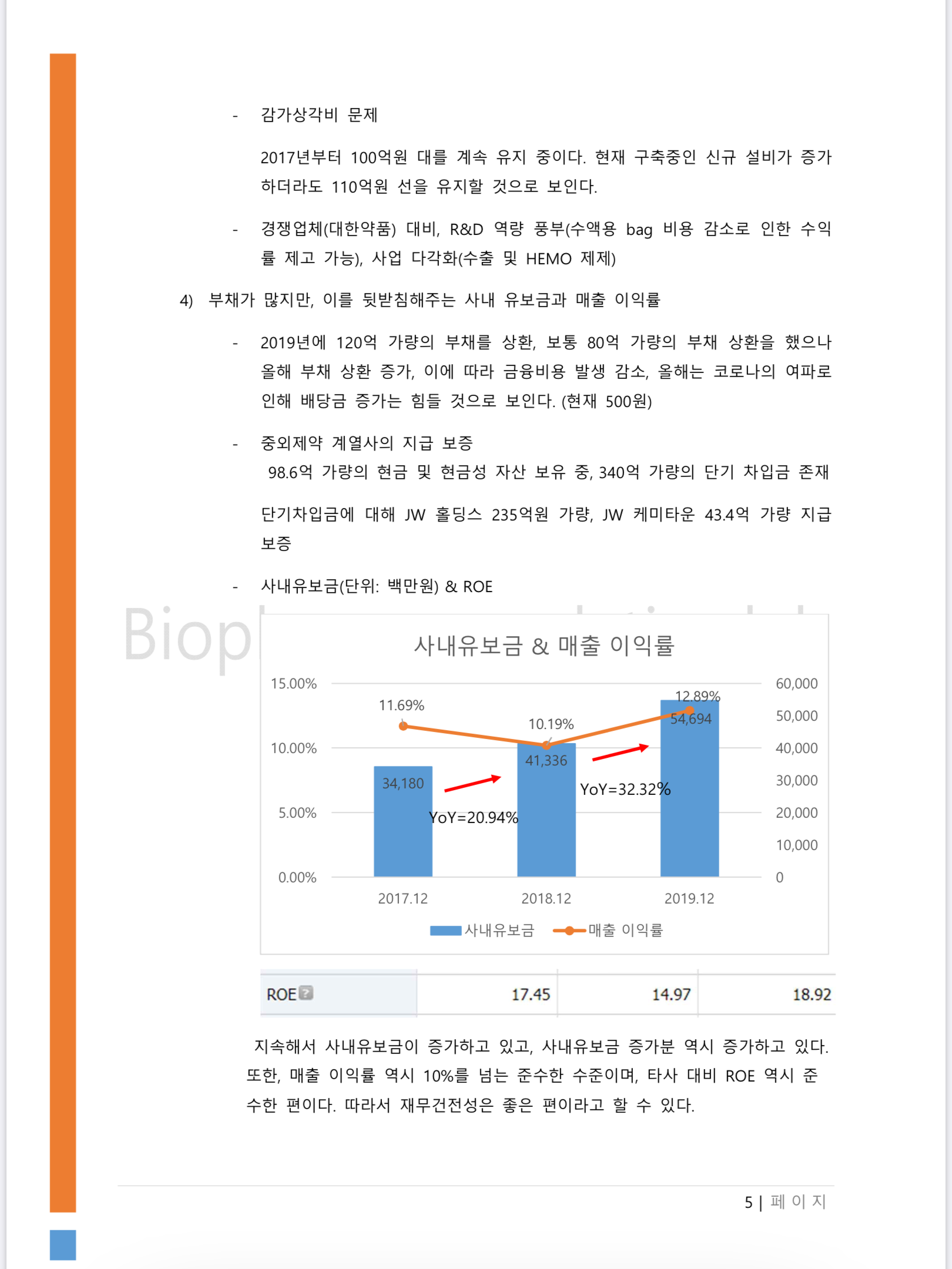 부채를 뒷받침해주는 튼튼한 사내 유보금과 매출 이익률
